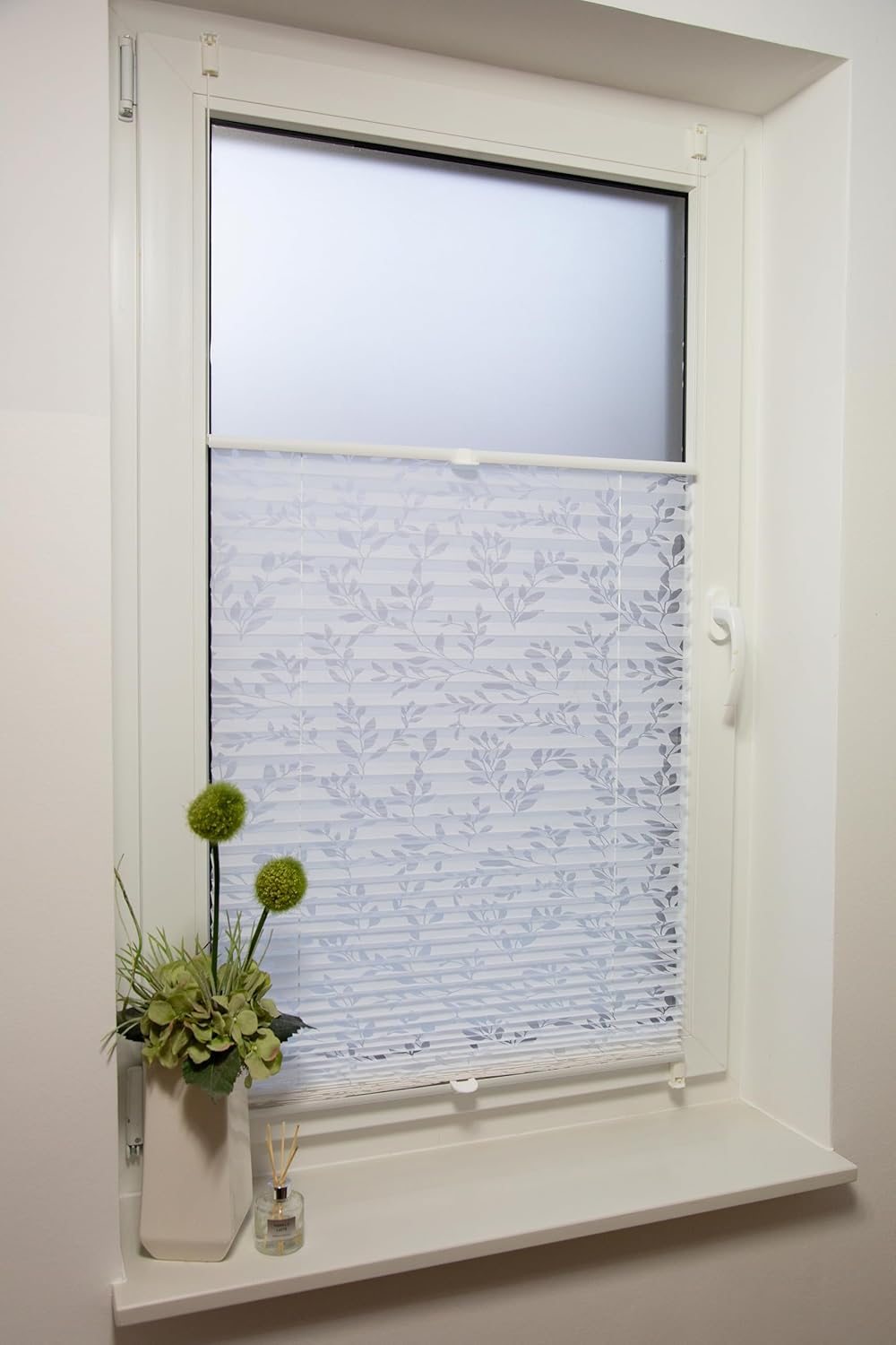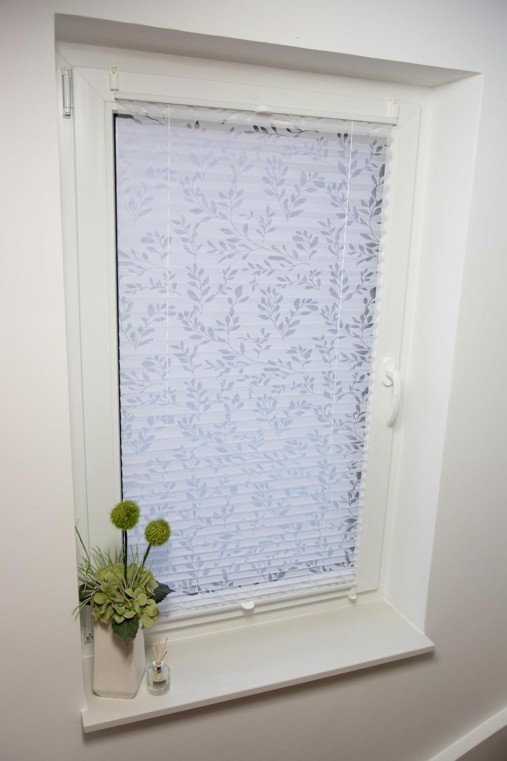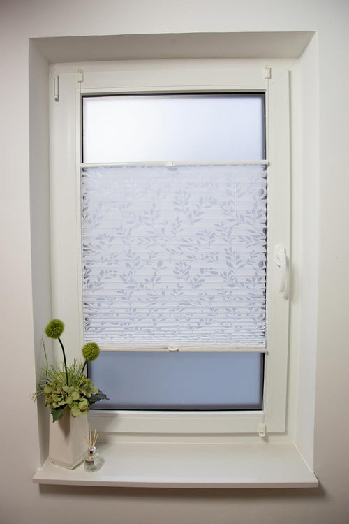 Das Plissee Toronto überzeugt mit einem zarten, modernen Blattdesign, das dem Raum eine ruhige und natürliche Ausstrahlung verleiht. Der lichtdurchlässige Stoff sorgt für ein helles, freundliches Wohngefühl und bietet gleichzeitig angenehmen Sichtschutz. Das dezente Muster wirkt elegant und zeitlos und fügt sich harmonisch in moderne wie klassische Einrichtungsstile ein. Dank der praktischen Klemmfix-Montage lässt sich das Plissee ganz ohne Bohren am Fensterrahmen befestigen und flexibel positionieren – ideal für stilvolles Wohnen mit Komfort.